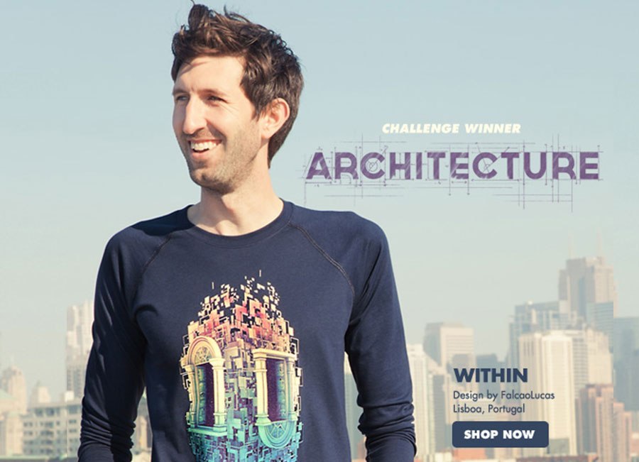 When we laid out the blueprint for our Architecture challenge, we knew it would inspire some fantastic submissions. Sure enough, we were right! You guys sent us over 200 incredible designs depicting the coolest buildings, bridges, houses, and more that knocked our architecture-loving socks off. After a whole lotta careful consideration, we finally named the Portugal-based husband and wife duo team FalcaoLucas the grand prize winner for their design “Within”. Learn a bit more about the artists below, and don’t forget to check out their awesome tee!